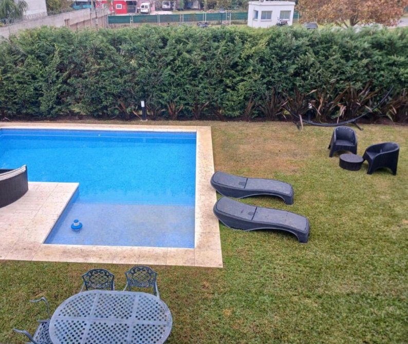 • Gran parque con piscina revestida en venecitas, solarium y asador con sector de comedor exterior.