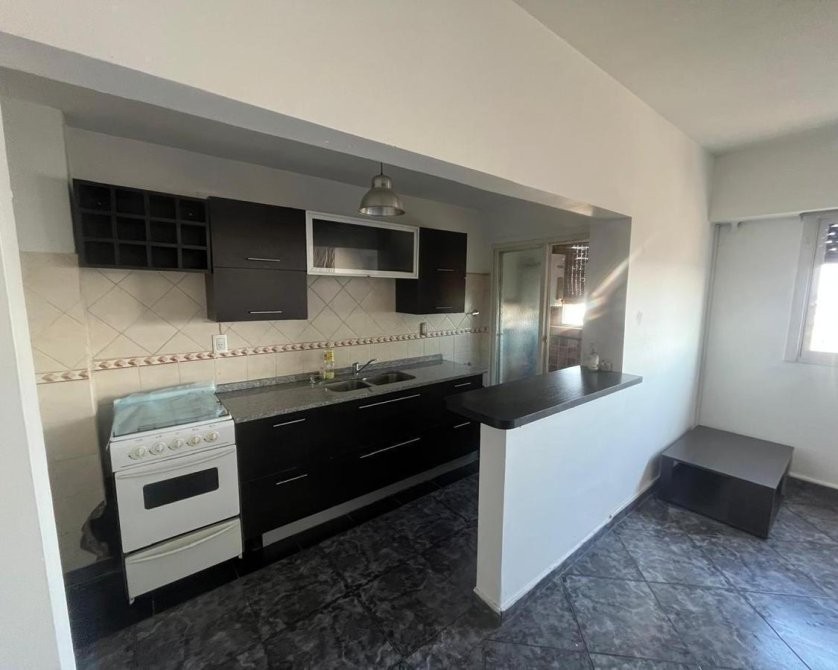- Cocina equipada con muebles bajo y sobre mesada, barra desayunadora integrada