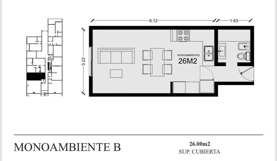 • unidades monoambientes, luminosas y funcionales.