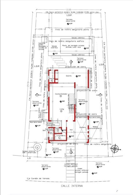 en estacionamiento ya preparado, dos patios internos, escalera metálica.