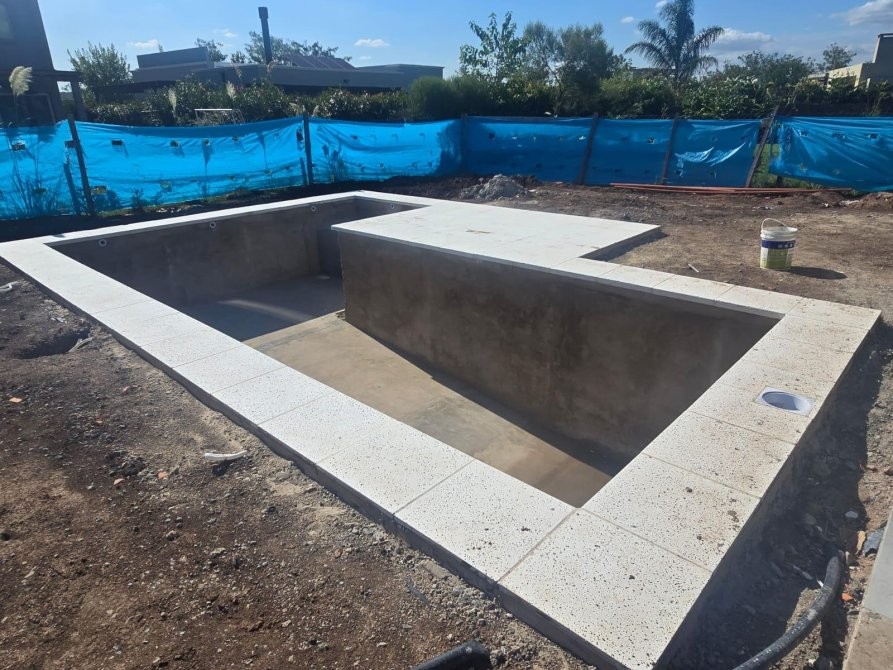 Fundación hecha con platea de doble malla y pilotines de refuerzo, estructura de hormigón armado, mampostería